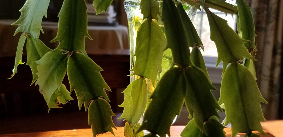 I began rooting these broken fragments last summer hoping for enough growth by Christmas to pot them properly for my daughter as a gift. There was, and I did. Many moons ago, my mother gave me a Christmas Cactus that blooms annually on cue without fail. Oddly, it did not this year and I suspect this was my mother telling me the plant needs tending to…new soil and a bit of propagating which I will get to in the spring.