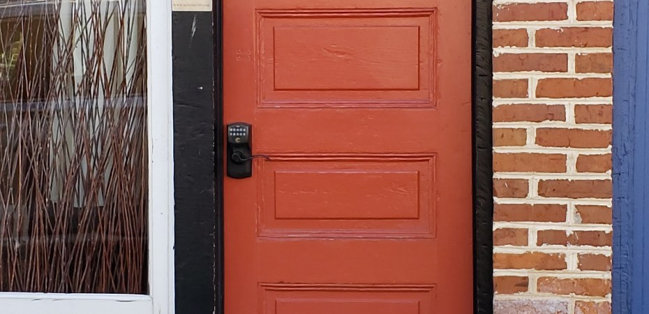 Here was the exception, a lonely green door hiding around back.
