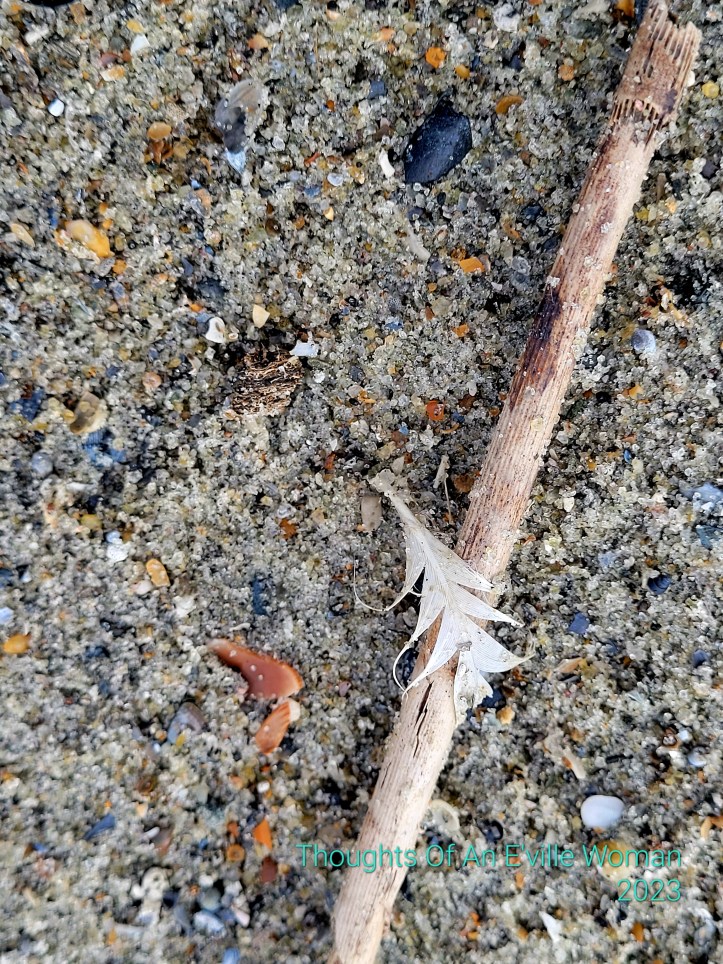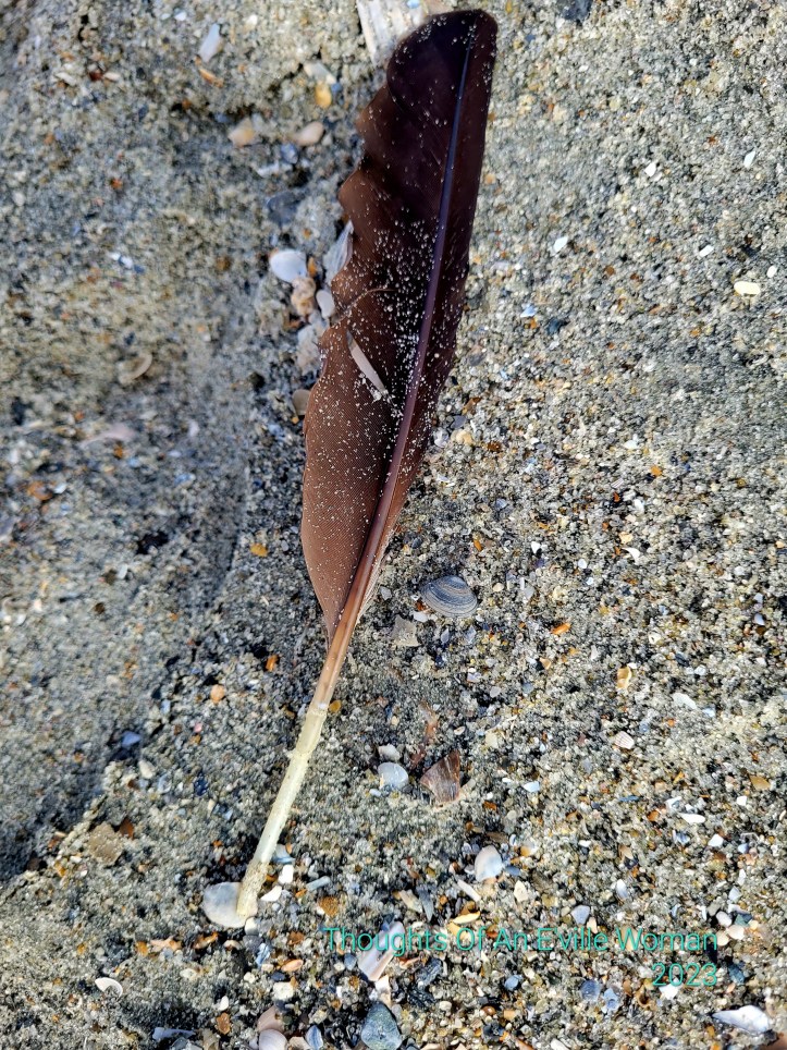 Inspired by Cee’s Fun Foto Challenge: feathers and a hazy day walk on Holden Beach.