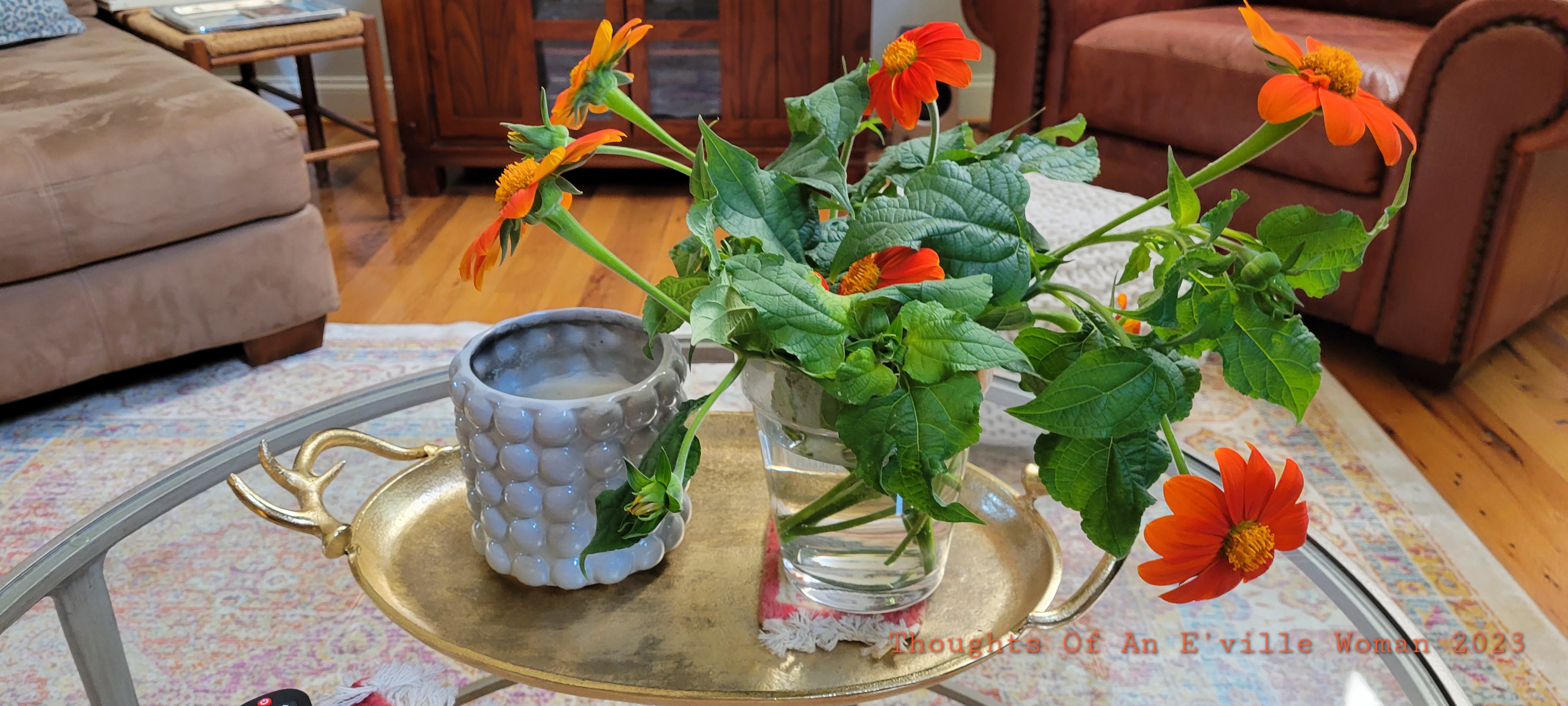 Since capturing this video a few weeks ago, my gorgeous Mexican Sunflowers have been downed by some hungry deer. The remaining blooms are now safely inside for me to enjoy until they decide they're done. I hope your gardens still have some blooms to carry you into fall.