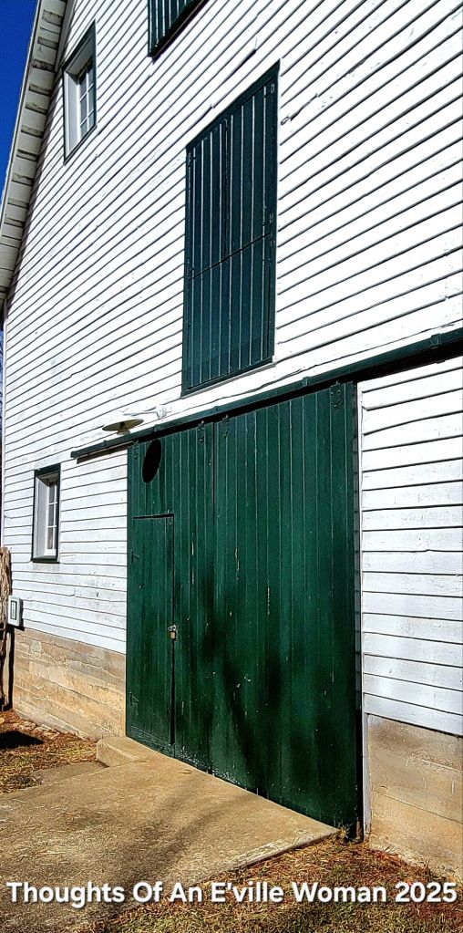 many doors adorn the front of the barn