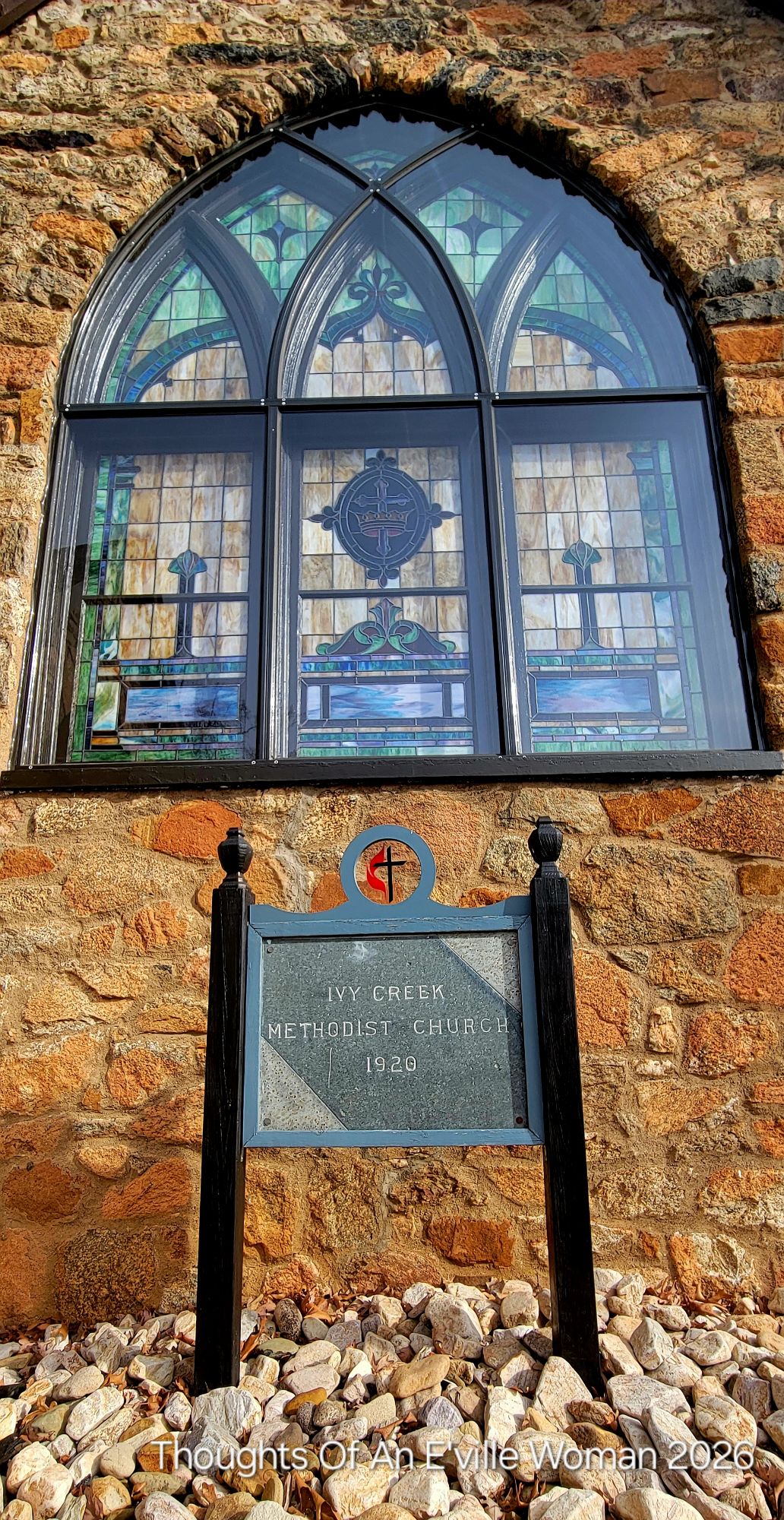 Ivy Creek United Methodist Church, at its current location, was built using native stone during 1916 and 1920. It is located in Albemarle County near the Rivanna River. I pass this church when driving scenic 'back' roads to my home.